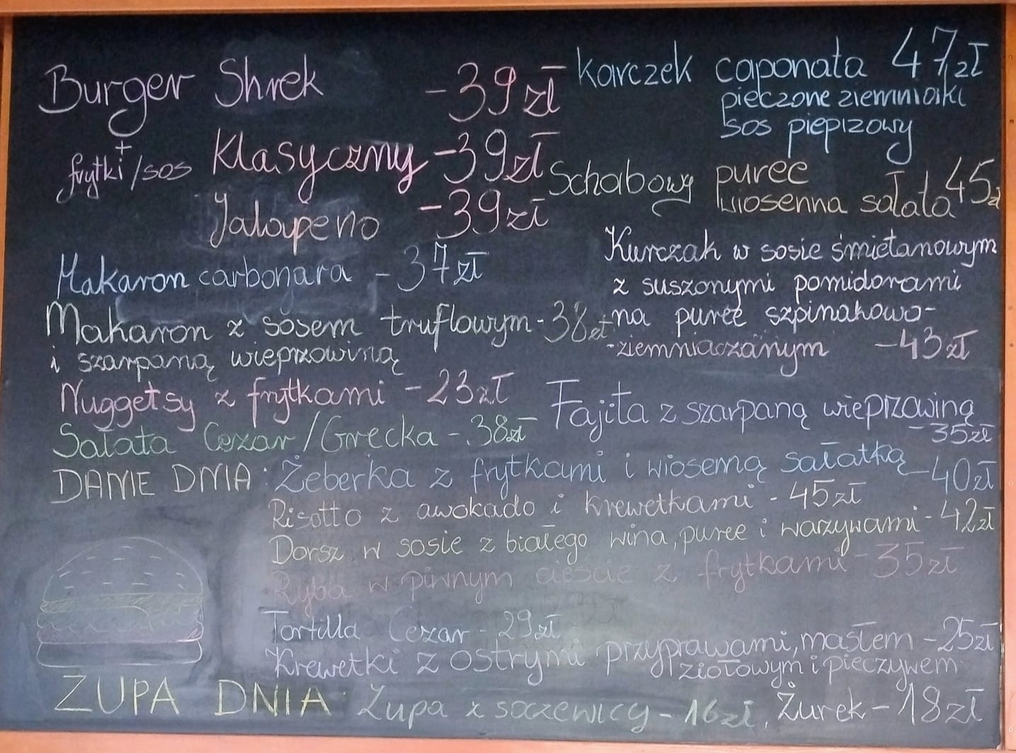 Każde danie przygotowujemy z najwyższą starannością, korzystając z lokalnych składników, aby zapewnić Państwu niezapomniane doznania smakowe. Nie brakuje również propozycji dla miłośników kuchni międzynarodowej, takich jak quesadillas czy burrito, a także klasyków, takich jak schabowy z purée ziemniaczanym.
